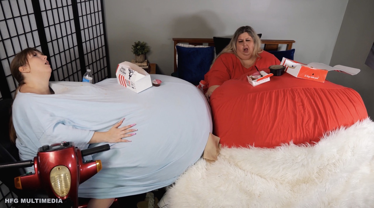 Lust4Lea is working out in the living room when Ivy rolls in on her mobility scooter eating Lust4Lea’s favorite snack- chips and queso! Ivy tempts Lust4Lea as she works out, teasing her with her favorite treats and trying to convince her to cheat on her diet just a little. Lust4Lea tries to resist, but eventually, she caves. After all, one little cheat snack can’t hurt. Lea tries a single chip and then she must have another. And another. And then she snatches the snacks from Ivy and begins to stuff herself. Ivy smirks and rolls away on her scooter knowing that this is the beginning of the end for Lust4Lea’s waistline.